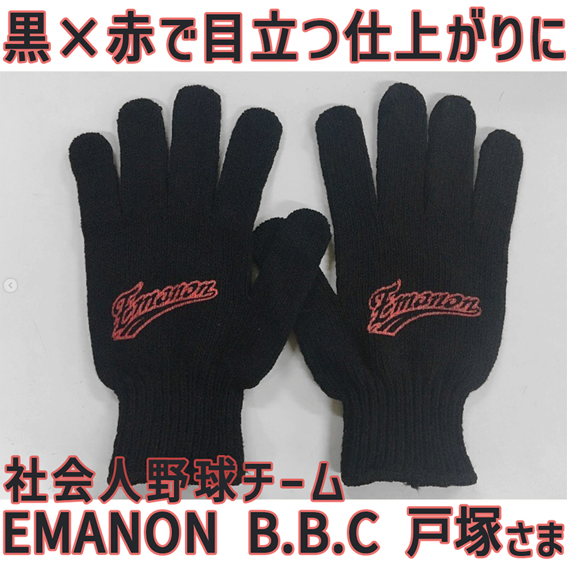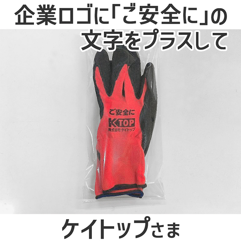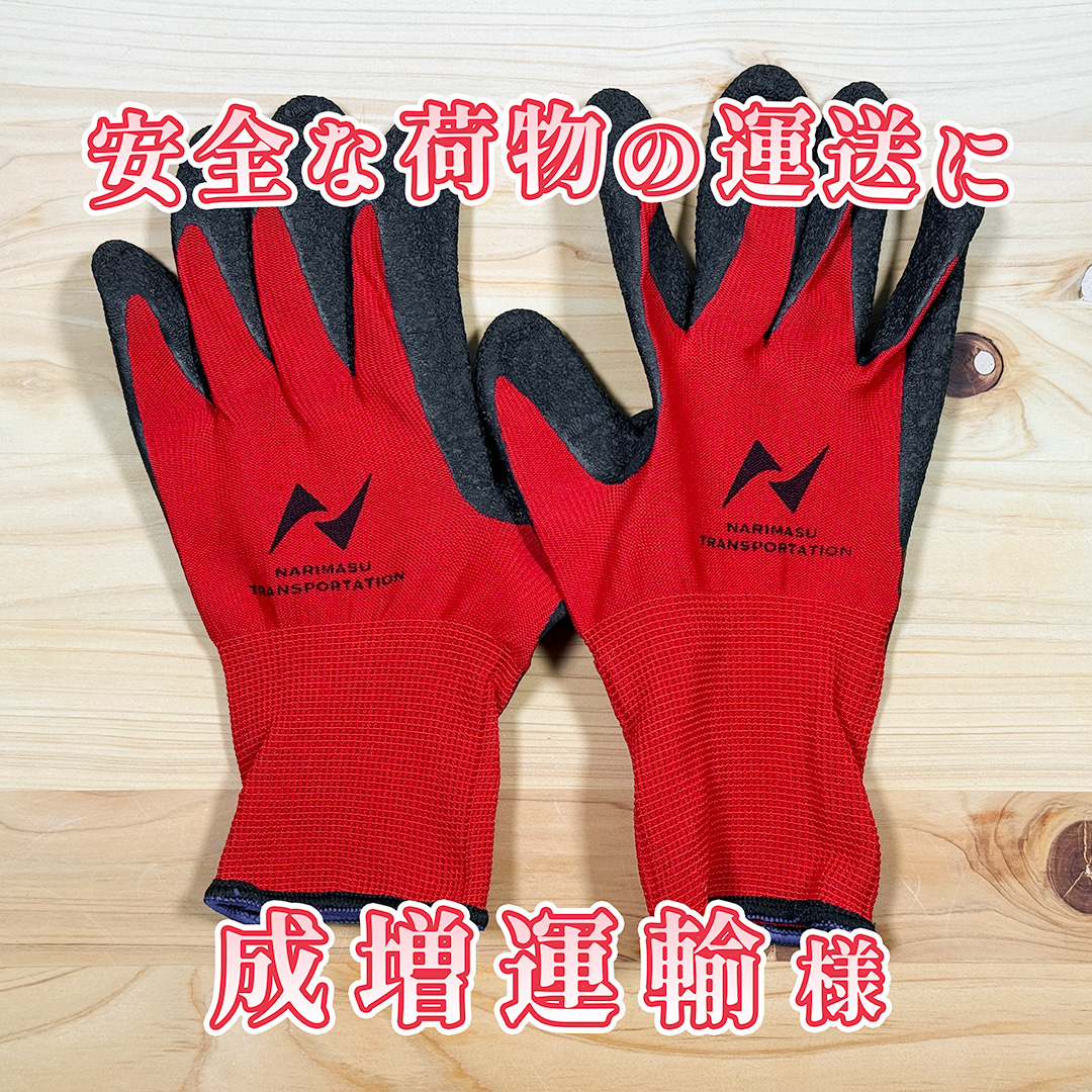 いしい旋盤製作所さまより年末年始の挨拶用の品として左右で異なる図柄をプリントした会社オリジナル軍手のご注文を頂きました。 使用した手袋の種類は【 スベリ止め軍手 】です。