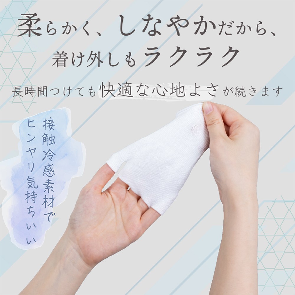 ヒンヤリすべすべとしたつけ心地で手袋のつけ外しもラクラク