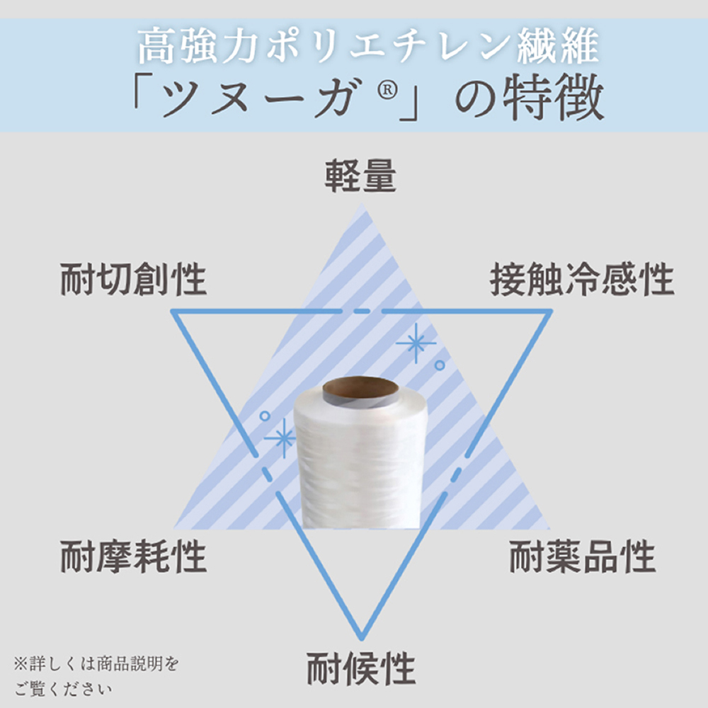 耐切創素材 ツヌーガ®( 高強力ポリエチレン繊維 )の特徴