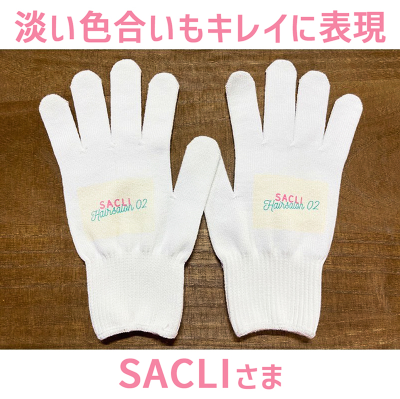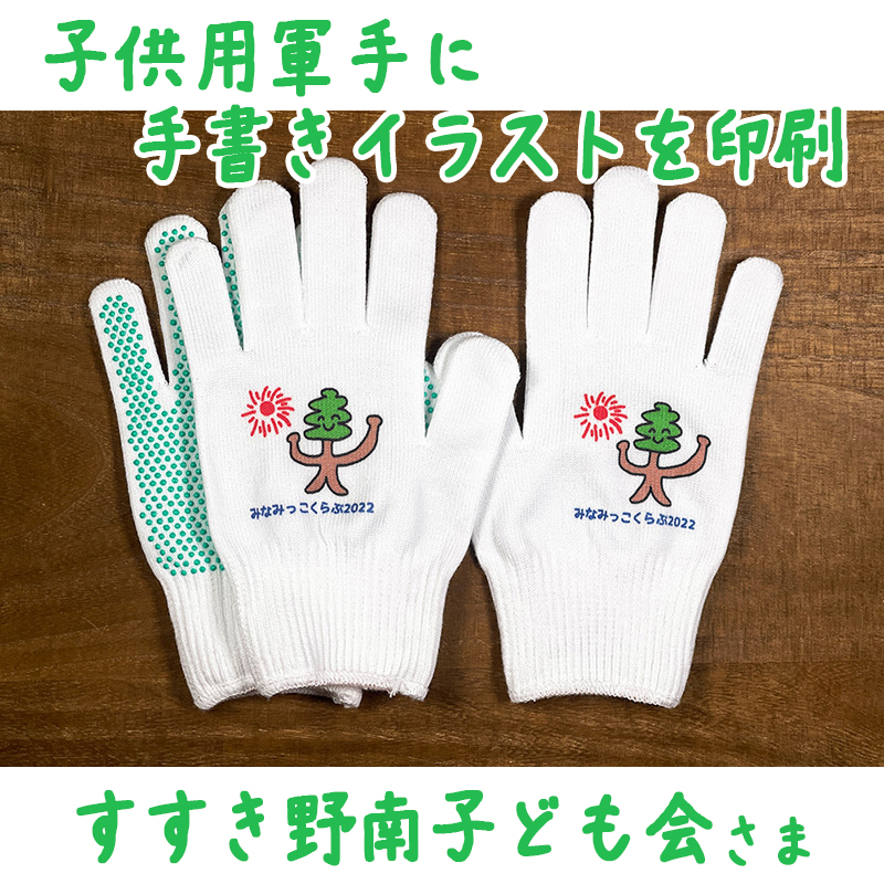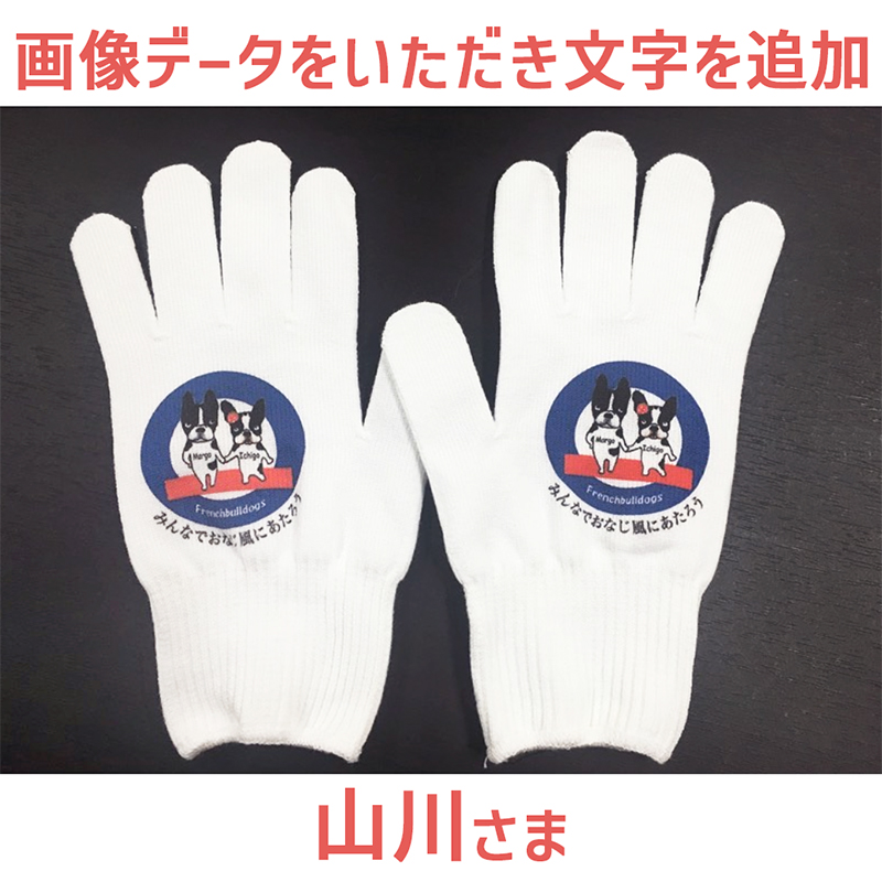 手首部分と、手袋生地の縁の数mm程は印刷出来ませんのでご注意ください。