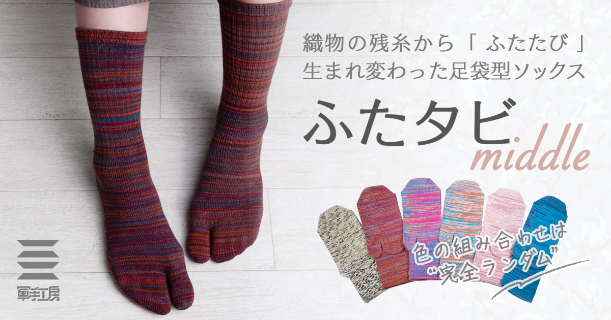 | おすすめ ポイント | 軍手製造歴60年の老舗:福岡県久留米市の軍手工房が国内自社工場にて生産した木綿織物の残糸を使った足袋ソックスです。 ・指が「ふた」股に分かれた「タビ」型ソックス ・余ってしまった糸を「ふたタビ」活かしたい ・いつか「ふたタビ」旅に出かけるときは快適なソックスでたくさん歩いてほしい ・靴下の丈はスネの真ん中くらいの高さのミドル丈 ・色の組み合わせは完全ランダム。ガチャガチャのようなワクワク感をお楽しみください。 ・伸縮糸やゴム糸にはストッキングや靴下にも使用されている安心の国内メーカー「マルロン」の糸を使用しています。素材はナイロン/ポリエステルとポリウレタンです。 |